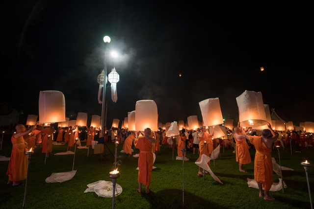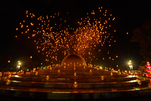 ムーンムアン寺院やサーイムーンムアン寺院で毎年行われており、チェディルアン寺院では