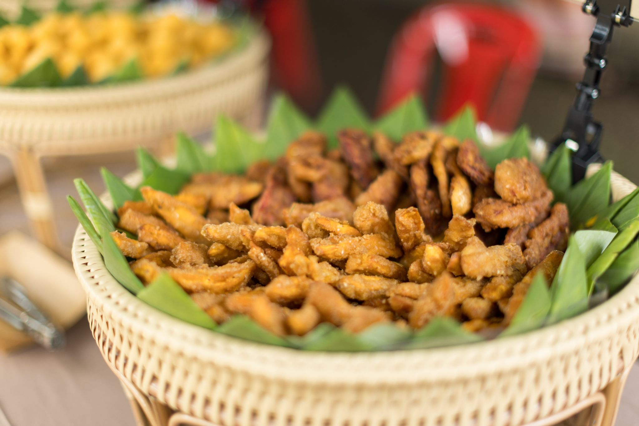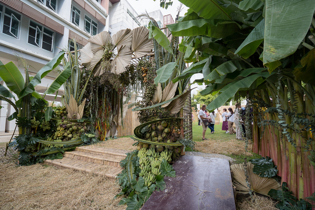 プラトゥパーはバナナの幹や葉、ココナッツの葉、サトウキビ、ガランガル、ランタン、千日紅、マリーゴールドなどを使って飾り付け、簡易的なものは公的な場所や学校や寺院などの入口にも飾られイーペン時期は街中でも見かけます。