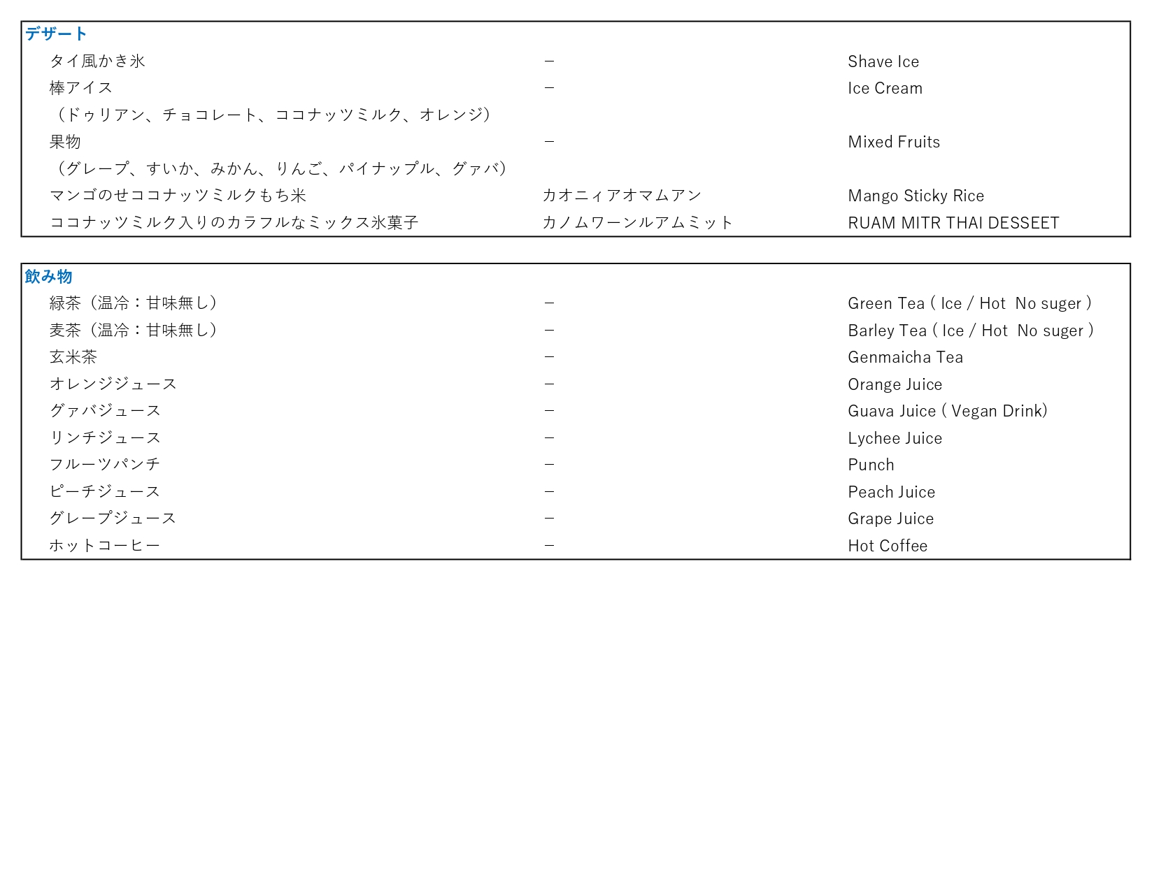 | 条件:大人2ー3名 合計から100バーツ引 |