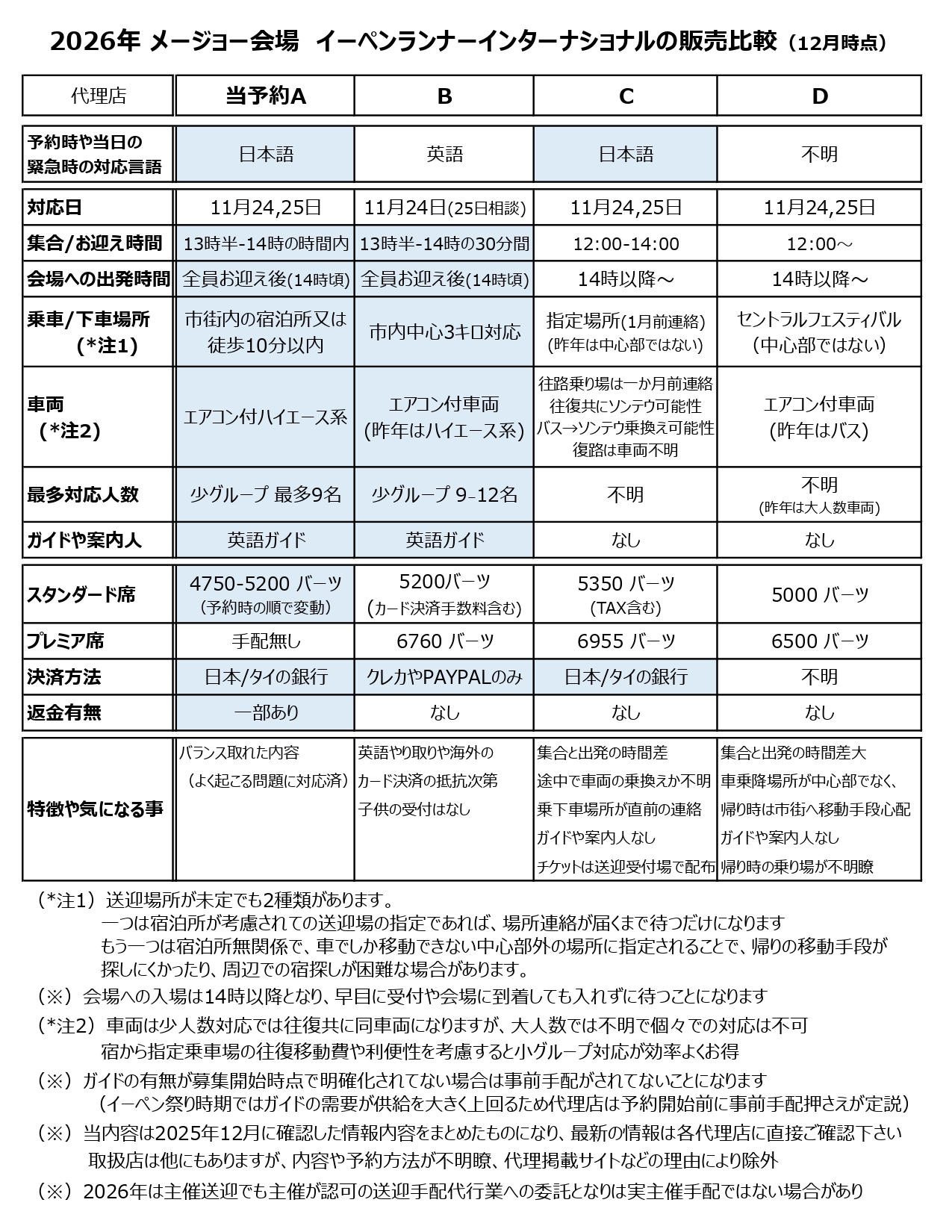 • ロイカトン期間中のチェンマイ空港発着の夜間便は欠航や時間変更になりやすく、控えることをおすすめさせて頂きます。